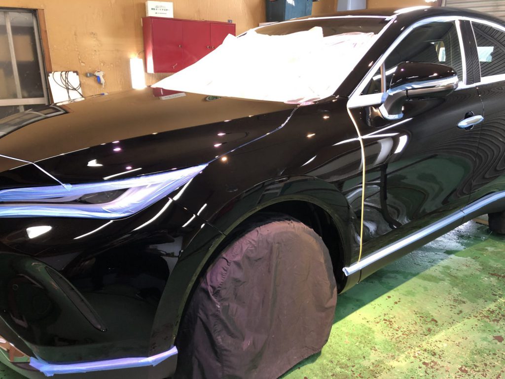 新型 ハリアー ガラスコーティング施工日誌メッキモールなどダメージを受け易い部分は